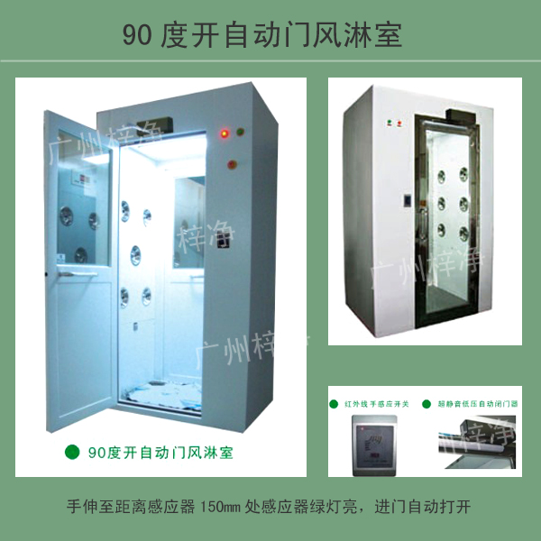 風淋室是一種通用性較強的局部凈化設備,安裝于潔凈室與非潔凈室之間。當人與貨物要進入潔凈區時需經風淋室吹淋,其吹出的潔凈空氣可去除人與貨物所攜帶的塵埃,能有效的阻斷或減少塵源進入潔凈區。風淋室/貨淋室的前后兩道門為電子互鎖,又可起到氣閘的作用,阻止未凈化的空氣進入潔凈區域