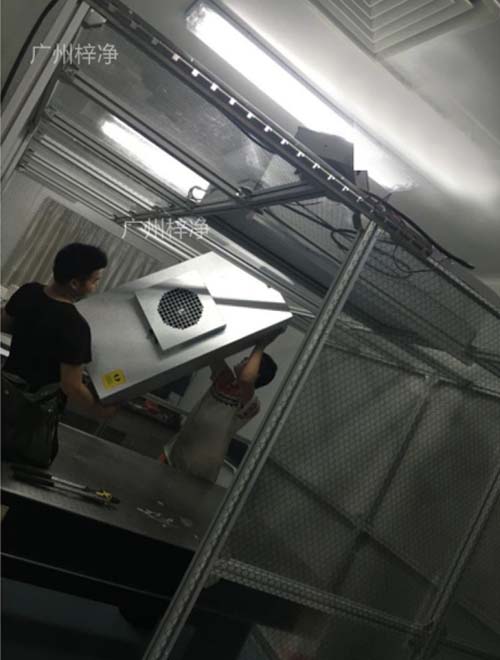 材料以鋼方通噴塑作為框架,采用風(fēng)機(jī)濾網(wǎng)機(jī)組FFU送風(fēng),凈化棚四周圍用防靜電垂簾,頂部鋪蓋密縫盲板,形成一個(gè)密縫區(qū),內(nèi)部凈化級(jí)別可達(dá)10—100000級(jí);特別適用于車間內(nèi)局部凈化級(jí)別要求高的區(qū)域,如流水線作業(yè)區(qū)域。高精確度產(chǎn)品組裝區(qū)。
