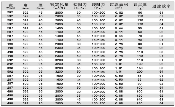 子母架初效過(guò)濾器風(fēng)阻圖及運(yùn)行條件
