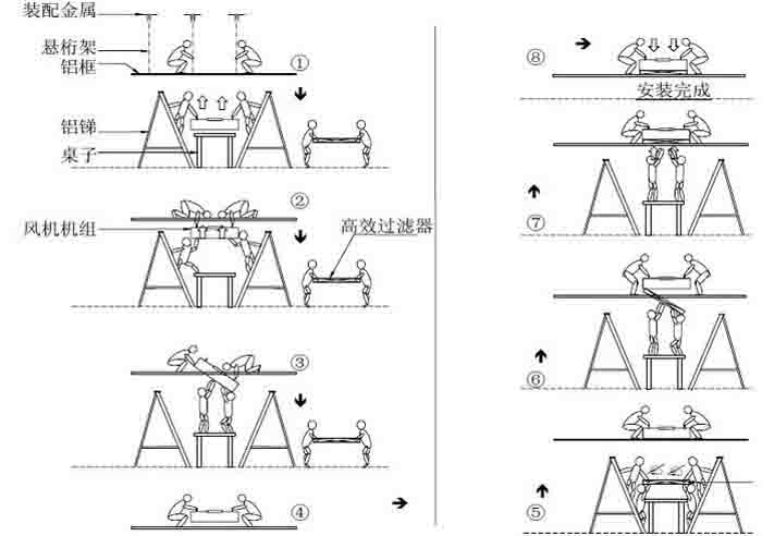 過濾器安裝:將過濾器安裝到FFU中,確保過濾器安裝到位,無松動。