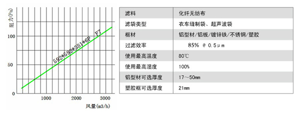 F7級袋式中效過濾器采用超細化纖纖維濾料,容塵量大,在整個使用壽命期內效率穩定。